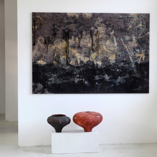 We are sisters and have been working as artists in different material areas for many years. Elisa as a ceramicist and Ruth Rosa in the field of painting/installation. We probably have thematic overlaps in our work due to our common background. Our interest in earth, plants and botany dates back to our childhood and is rooted in our family. The use of colors that come directly from nature and are often self-collected is a unique and special characteristic of both artists' work. The prerequisites are knowledge of botany and geology, practical test series, long experience and knowledge of the material, which deals thoroughly with the properties and also the history of the material.