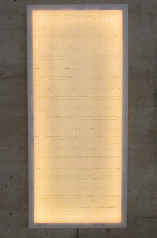 Ein Lochkartenstanzer von 1964 stanzt in der Performance „Im Takt des 1 / 0“ während der Vernissage originale Lochkarten. Die Lochkarte wird in der Ausstellung durch künstlerische Auseinandersetzung auf verschiedene Weise zum ästhetischen Objekt. Aber Lochkarten sind vor allem greifbares Sinnbild dafür, wie auch heute Daten verarbeitet werden: 1 und